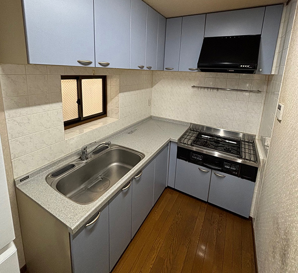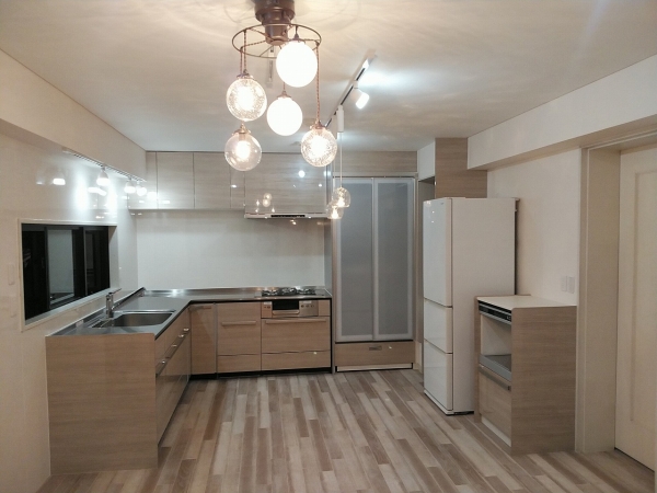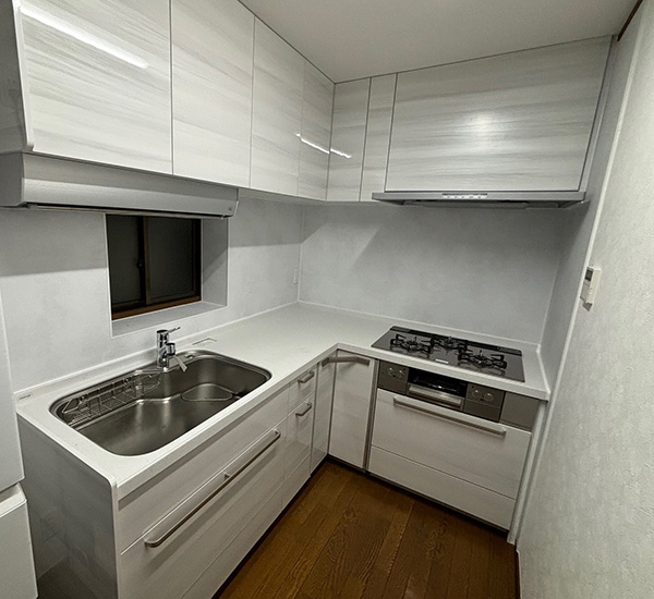 コの字型からL型にした事で広さを実現。明るくモダンなキッチンになりました。